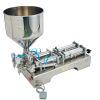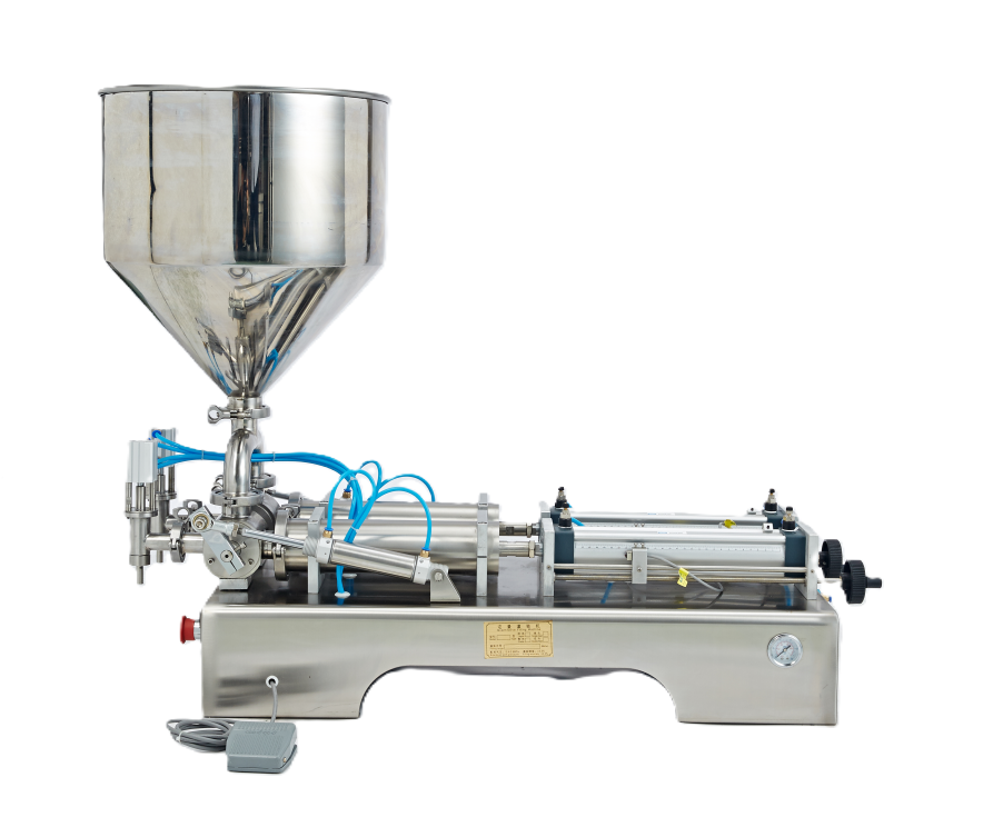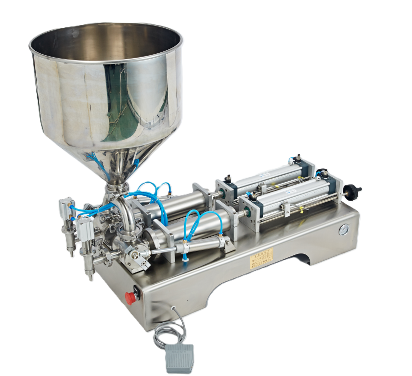 מכונת מילוי נוזלים וסמיכים, משולבת פנאומטית וחשמלית עם אישור CE.